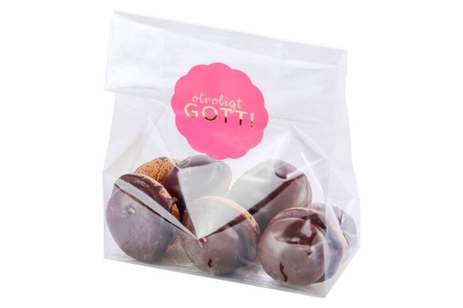 Vid val av text skriver vi den på marsipan – vilket innebär att tårtan inte är mandelfri.