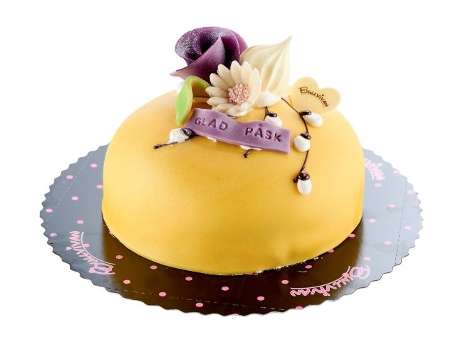Påsktårtan kan fås i olika färger , ange om det finns speciel allergi i kommentarsfältet samt text på tårtan.